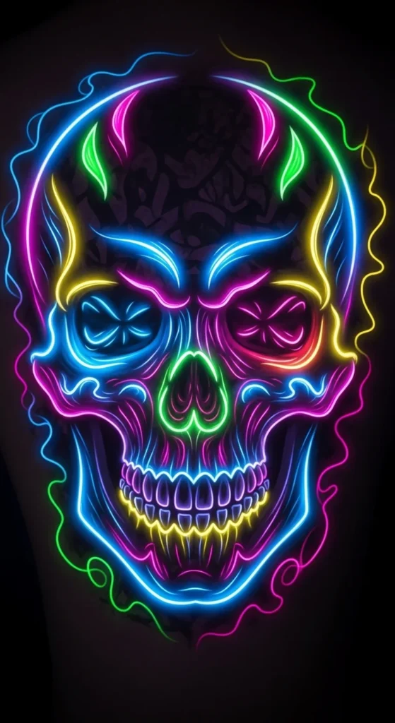 Neon skulls stand out thanks to bold color rims. They’re great for those who like bright artwork without needing a full sleeve. To practice color placement, use highlighters on paper. Start with bold edges, then soften them inward. Thighs and arms suit the style because the colors have space to show. If you’re sticking to a budget, use only two neon shades instead of a full rainbow. It still pops without extra cost.