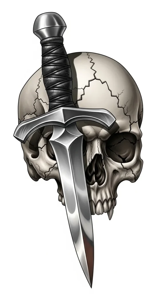This classic pairing shows danger, caution, or personal triumph. Many people choose it for the bicep because the shape naturally follows the arm. Start by sketching the dagger first to lock in the angle. Then place the skull around it. If you want to keep costs low, use simple shading instead of metallic ink effects. You can also skip complex backgrounds and stick to the core elements. For a personal spin, add a small leaf or star shape near the handle.
