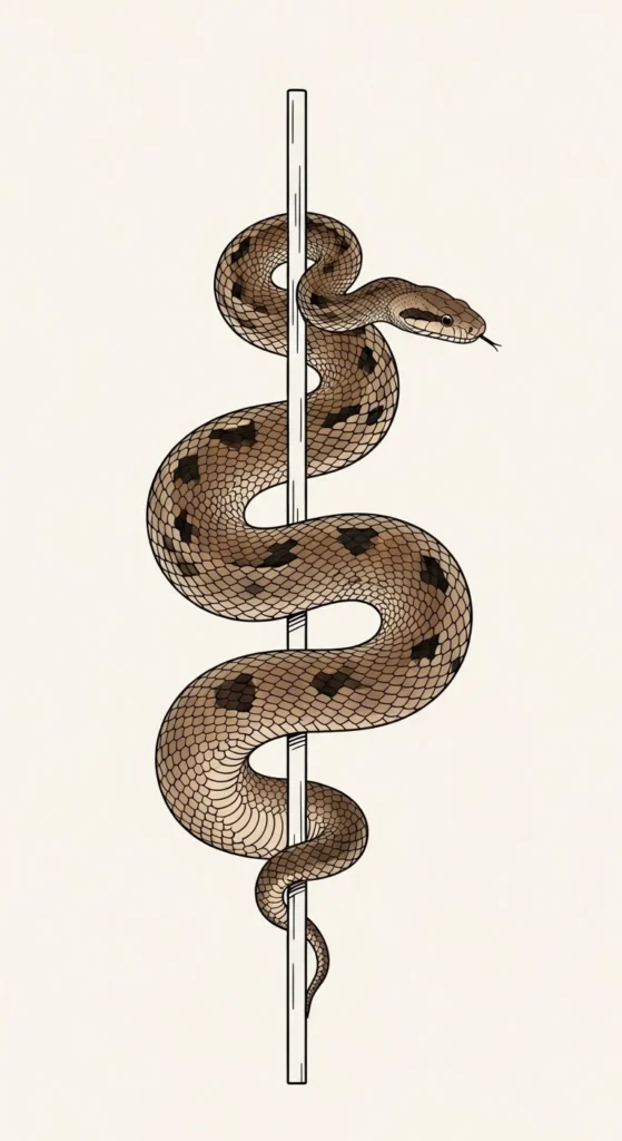A subtle nod to healing professions, this design keeps things simple. Using a straight line as the “staff” creates an easy structure for the snake to follow. Stick to an outline style for a quick, affordable session. Try sketching a vertical line on your forearm or calf and drawing a curved snake shape around it. This helps with spacing. Moisturize often while it heals to keep the lines crisp.