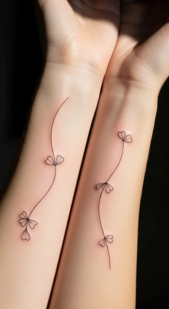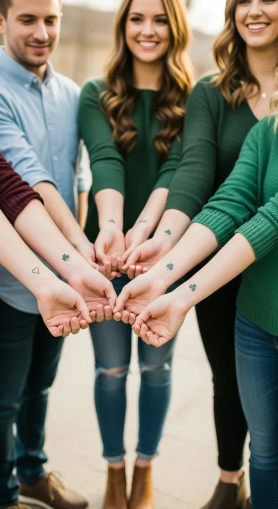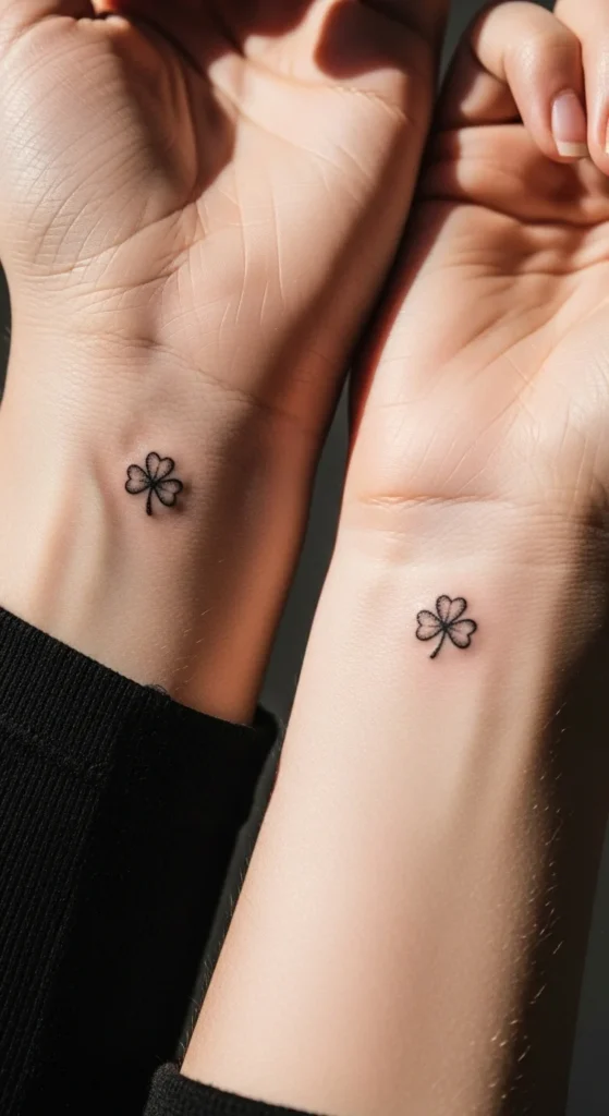 You can keep all shamrocks identical. Or switch the direction slightly so each tattoo feels personal. Some friends use different line weights or add a single dot near the stem. That adds individuality without breaking the match.