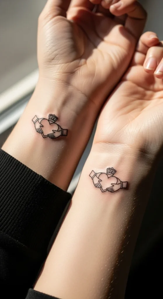 Split designs are powerful for close friendships. Each person holds half the symbol. When together, the image feels complete.