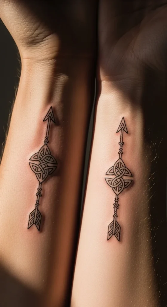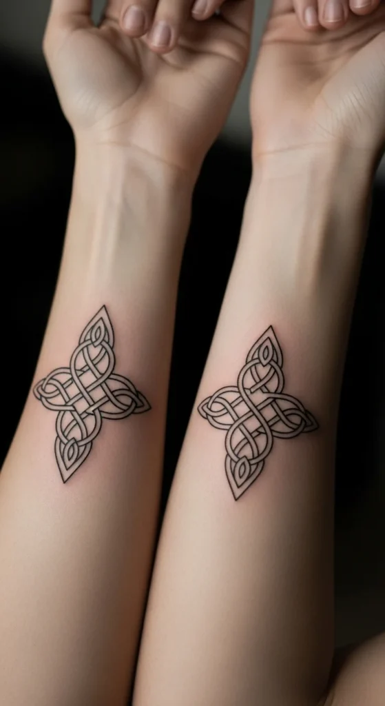 Some groups split the knot across two tattoos. When arms are placed together, the design completes itself. That approach keeps each tattoo small and personal.