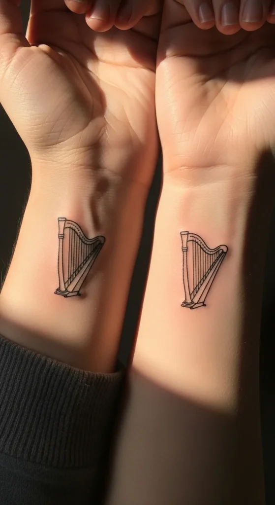 This design suits those who want cultural meaning without loud visuals. Keep the harp small and clean.