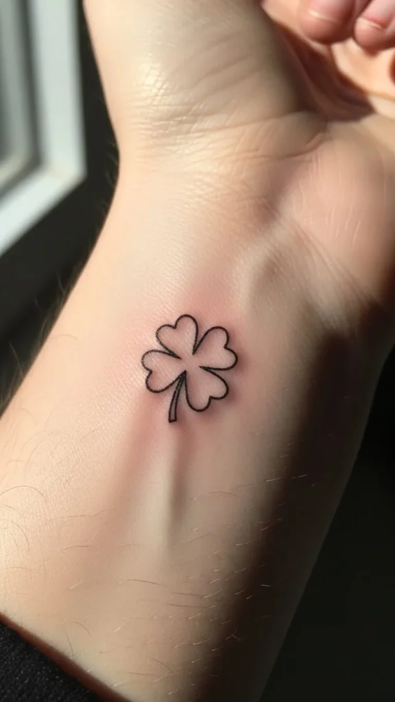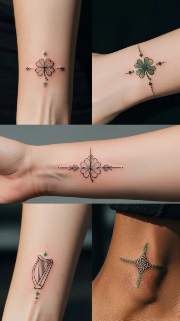 A tiny shamrock outline stays classic and calm. The shape reads clearly even when small. That makes it great for wrists, ankles, or behind the ear. Many artists offer simple outlines as quick sessions, which helps with budget planning.