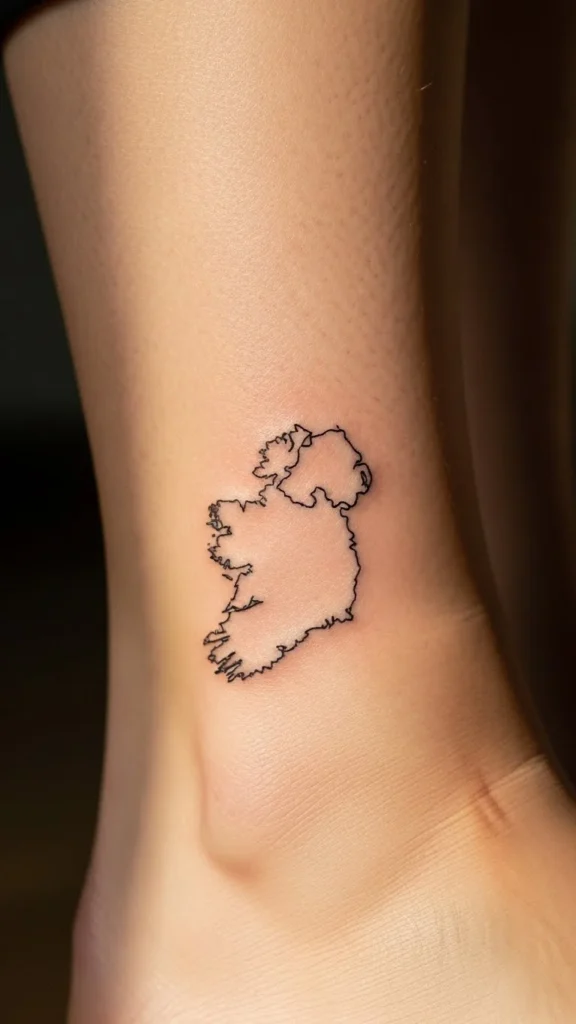 An Ireland outline feels personal and direct. Fine-line work lowers cost.