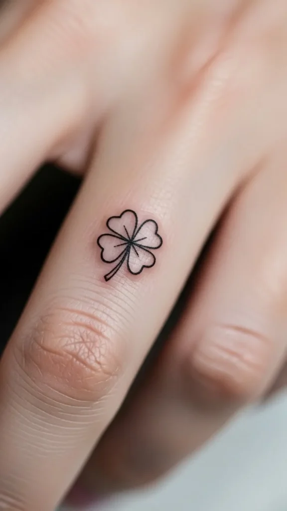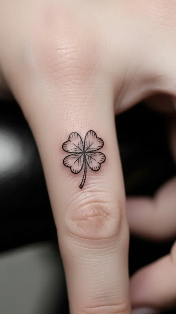 Micro clovers feel playful. Finger tattoos fade faster, so choose bolder lines.