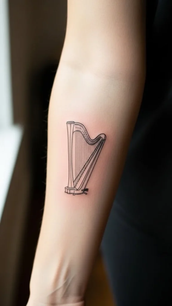The harp carries Irish meaning in a clean form. Keep the design simple. Skip extra strings or shading.