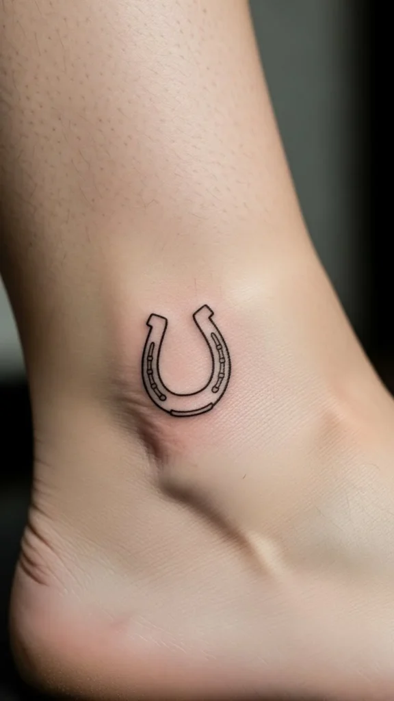 A thin horseshoe curve keeps the luck symbol subtle. Avoid extra marks to help longevity.