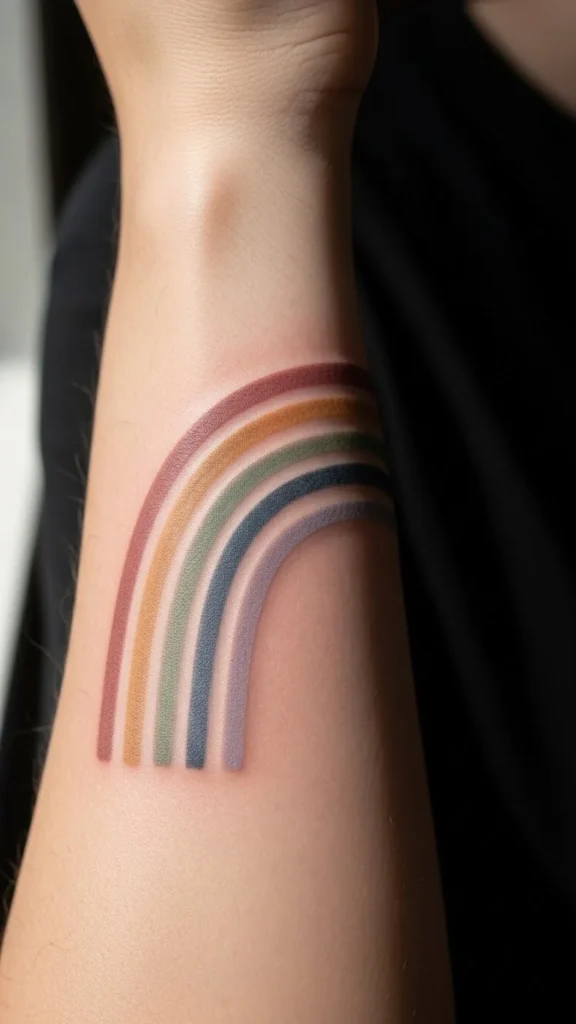 One arc hints at a rainbow without full color bands. Use one or two soft tones to limit cost.