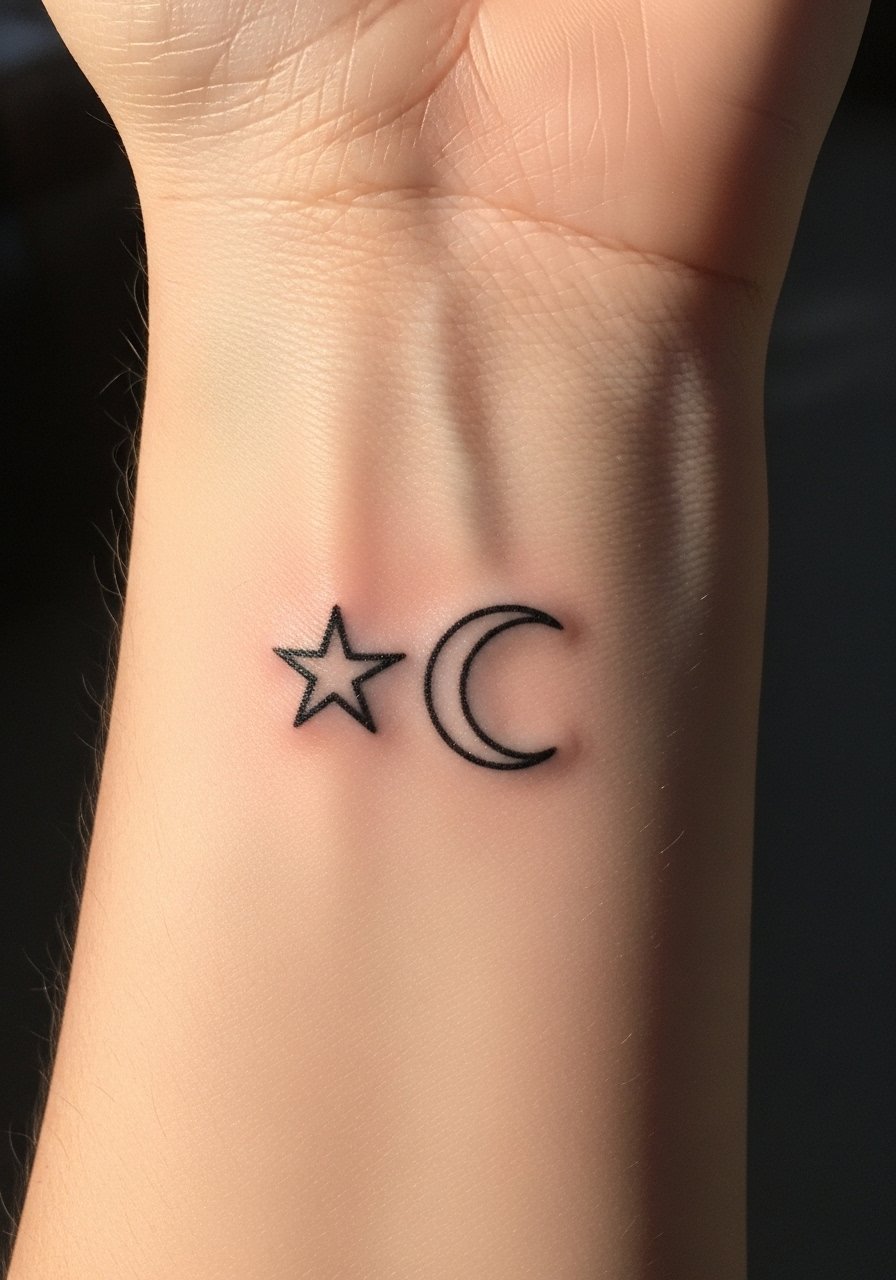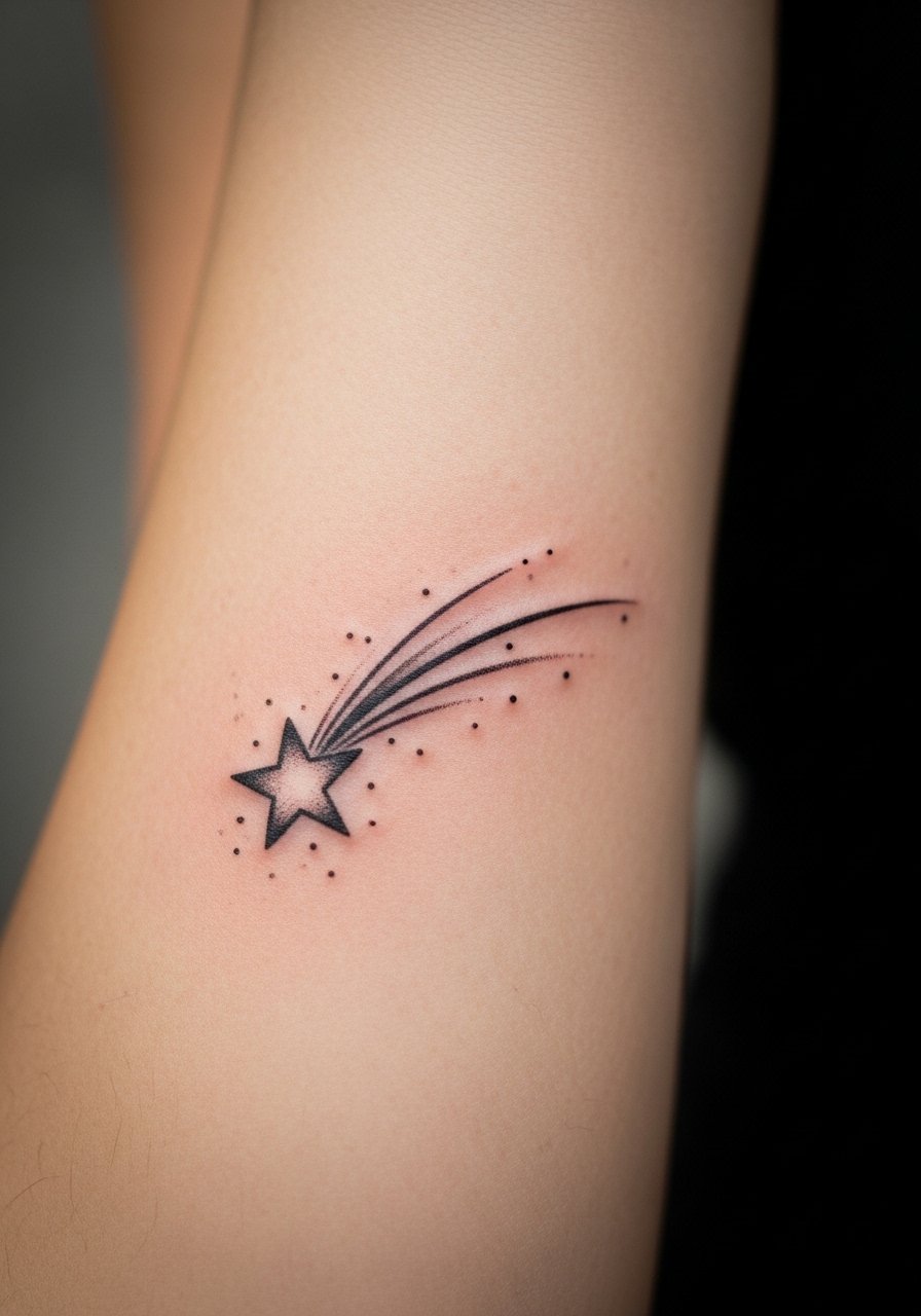 Shooting stars give motion to a tiny design. Forearm skin holds detail well. Expect normal surface healing in 2–3 weeks. Avoid overly thin trailing lines; they fade first.