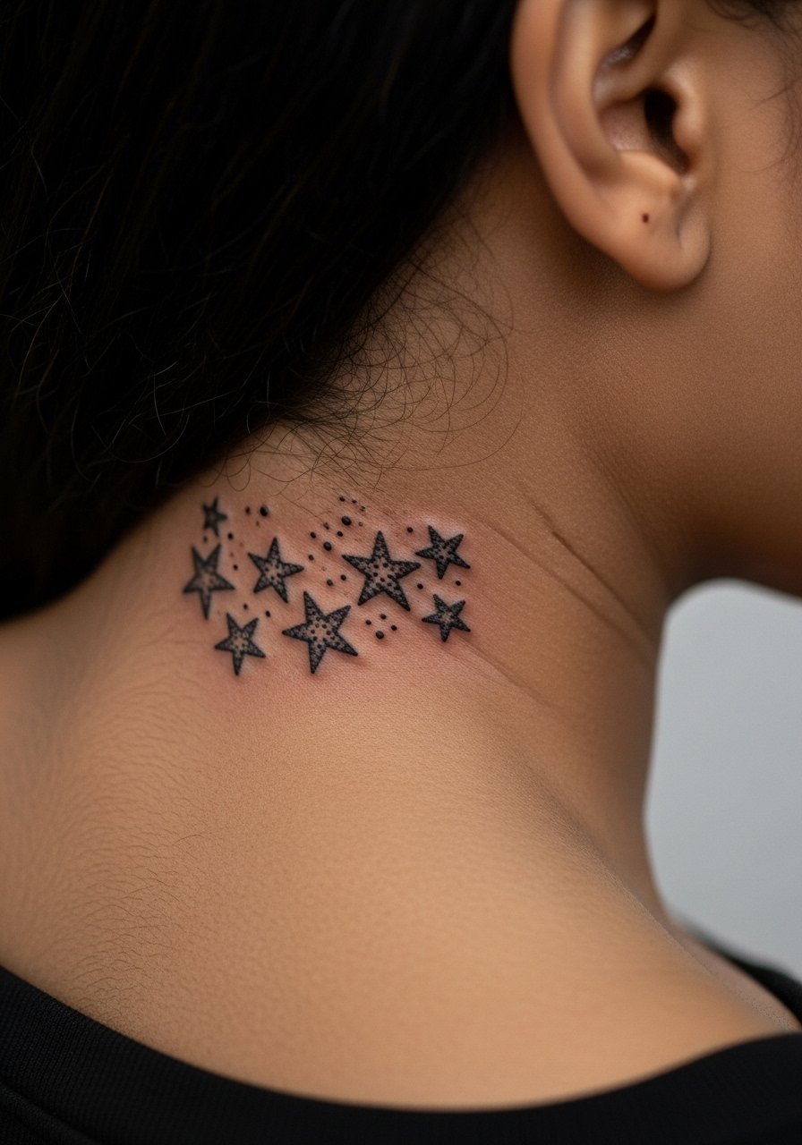These ideas focus on minimalist and fine-line star work. They suit wrists, behind the ear, ribs, and fingers. I picked placements that heal well and hold detail. Data shows tattoos are mainstream—about 30% of U.S. adults report at least one tattoo (Pew Research Center, 2019), and nearly half of millennials have ink (Harris Poll, 2019). Artists I follow say simple black ink and careful placement resist fading best.