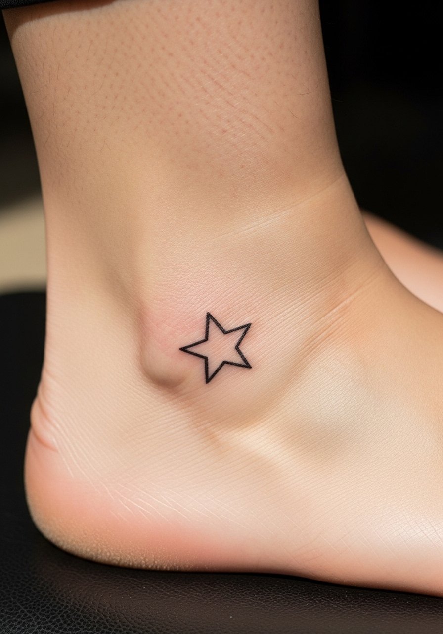 Outline stars can look crisp fresh but need solid line weight to avoid blowout. Ankle bone is bony and stings. If you love thin outlines, ensure the artist recommends a stable line thickness.