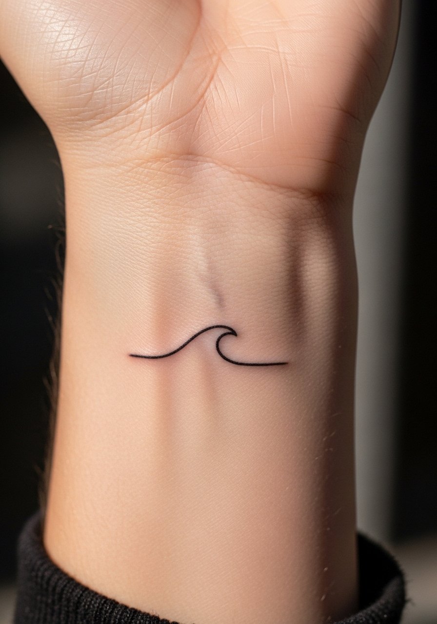 I got a wrist wave like this to mark personal change. It reads clean in daily life and hides under a watch easily. Pain is low; healing is quick if you keep it moisturized. Ask for slightly bolder lineweight if you want longevity — ultra-thin lines can blur over years.