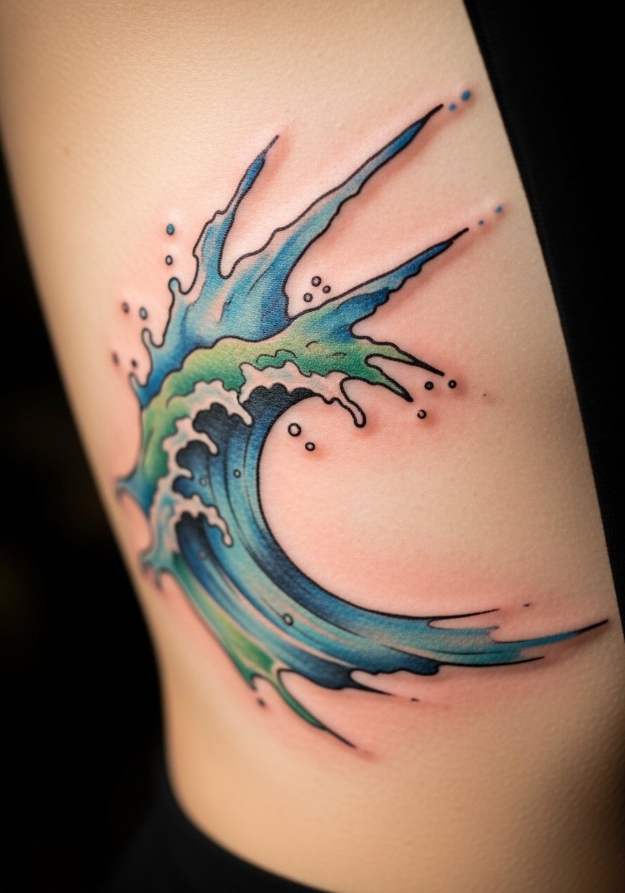 Watercolor waves feel like emotion on skin. I love the organic look, but from experience, colors can mute over time. If longevity matters, ask for black outlines or a hybrid blackwork base to hold the shape as pigments soften.