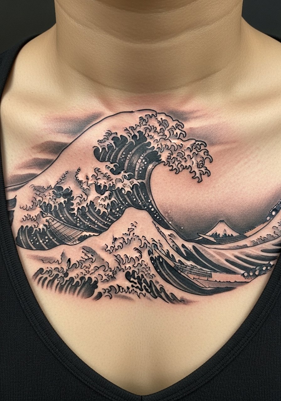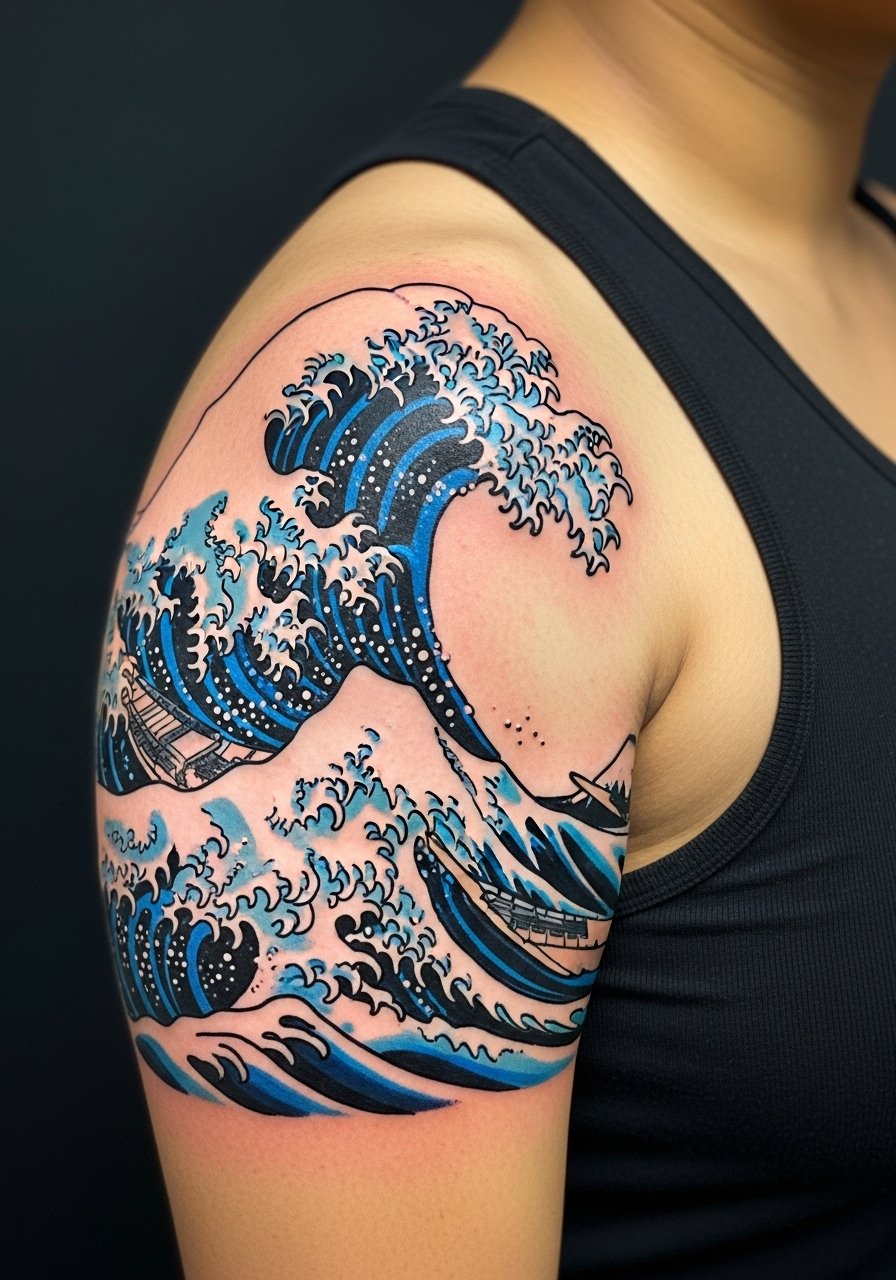 I’ve always been drawn to Hokusai’s motion; a shoulder or back canvas lets the wave breathe. These require an artist experienced in Japanese swirls. Expect sessions and strong blackwork to keep the drama after healing.