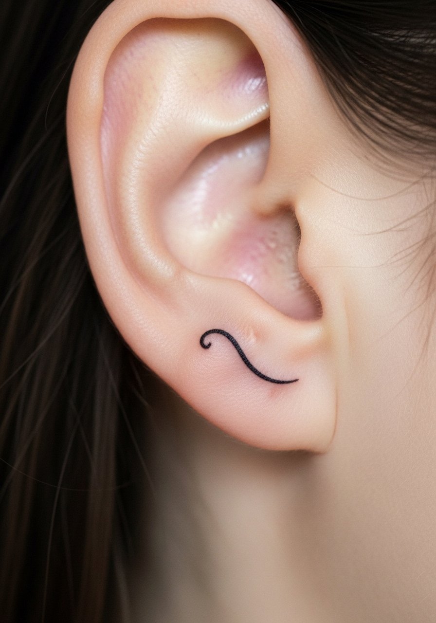 25. Minimal Wave Tattoo as Ear Cuff Line