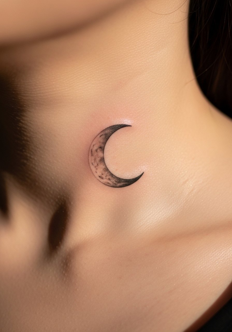 A tiny realistic moon or moon-phase sequence on the collarbone reads intimate. Collarbone has moderate pain and shows healed texture well. Micro-realism needs an artist experienced in healed photos—they’ll control needle depth so shading doesn't blur. Common mistake: over-detailing in a tiny area; scale up for longevity.