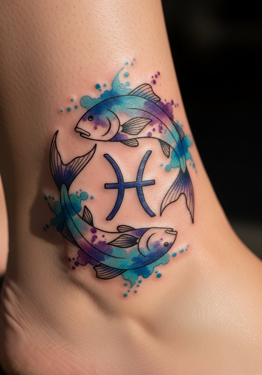 Ankles show delicate necklaces or astrological fish well. Watercolor adds softness but fades faster on high-friction areas. Keep lines slightly bolder near the ankle to avoid breakup. Healing includes swelling from shoes—avoid tight footwear for a week.