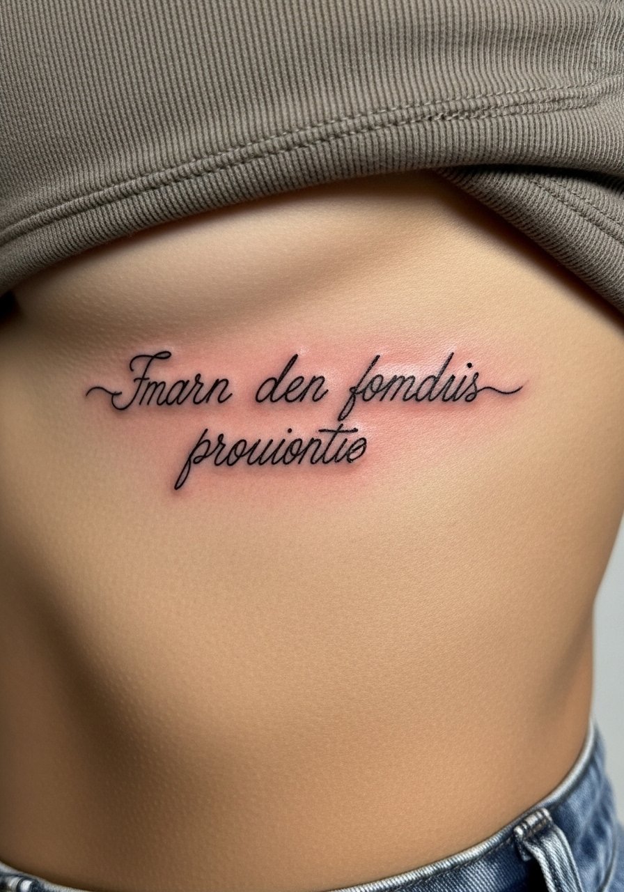 Tiny single-needle script reads elegant but risks losing crispness over time on the ribcage. This placement is private but painful. Ask for slightly larger letterforms to preserve readability as the ink settles. Keep sessions short to avoid overworking skin.
