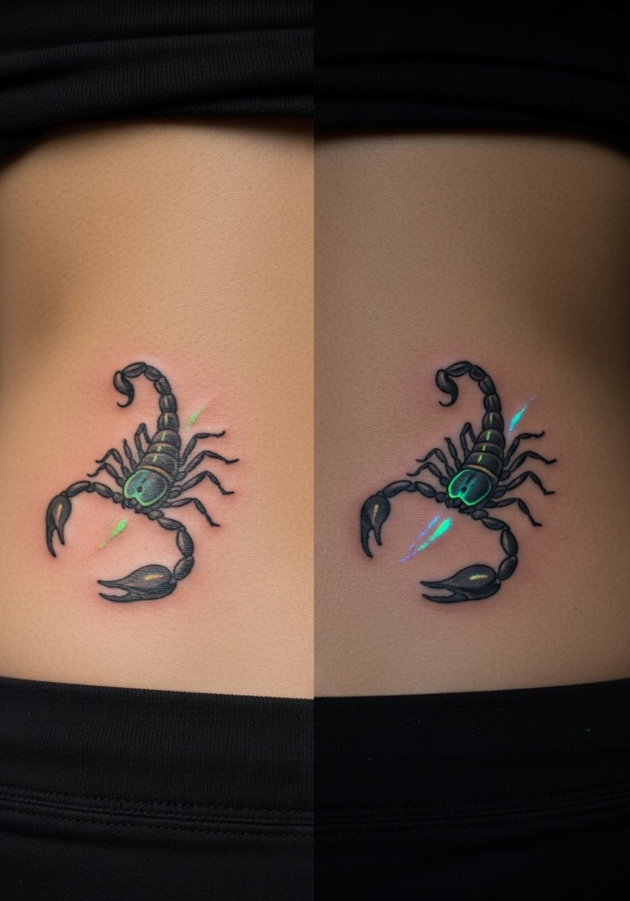 UV adds a hidden effect—great for people who want subtlety. UV pigments can fade differently; pair them with solid blackwork. Lower back heals reasonably but can be prone to friction with clothing. Ask artists who have experience with UV pigments and healed shots.