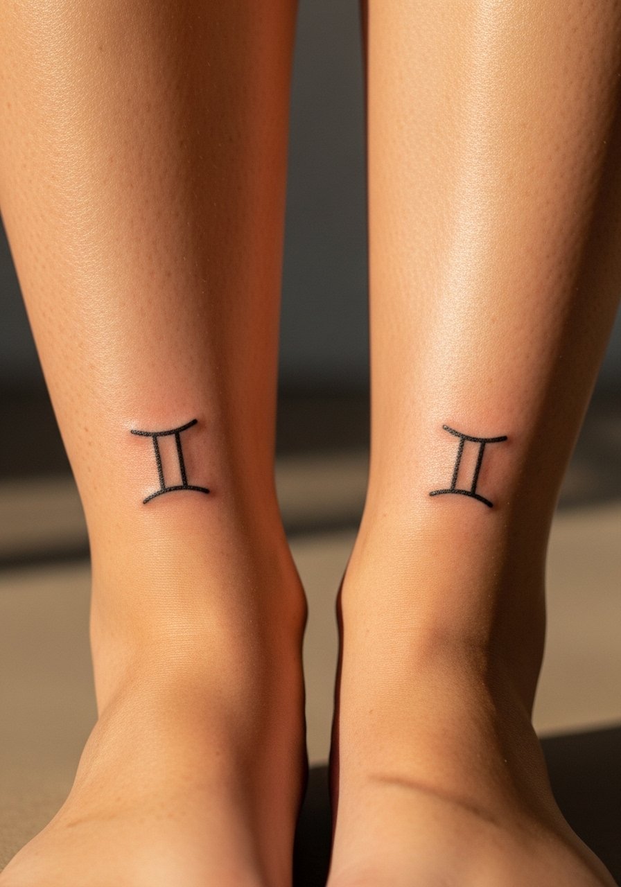 Matching zodiac tattoos are meaningful for shared signs. Ankles are visible but high-friction; plan placement where socks/shoes won’t rub badly. Fine line works well but ask for slightly thicker anchors so the design keeps shape.