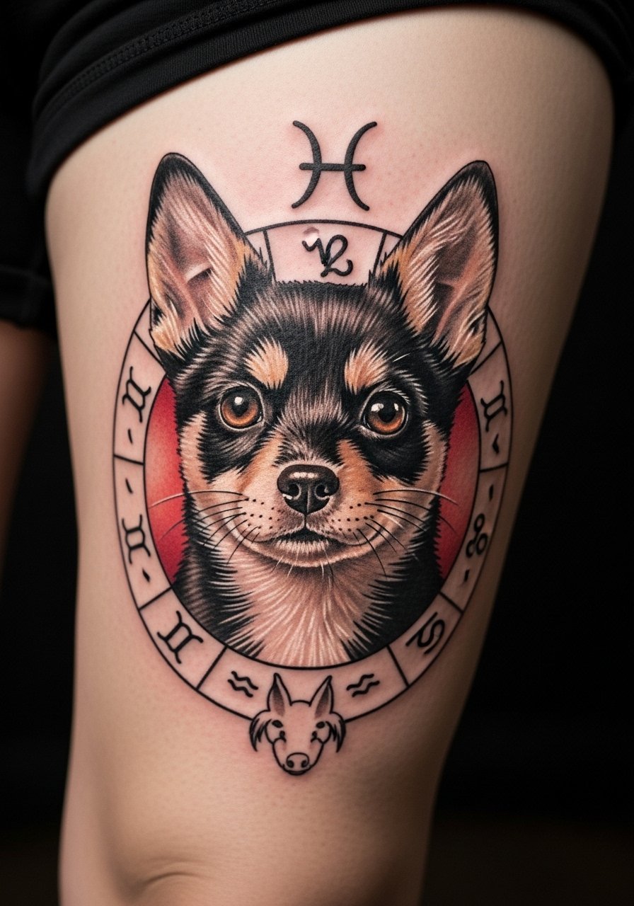 Micro-Realism Pet + Zodiac Hybrid on Thigh